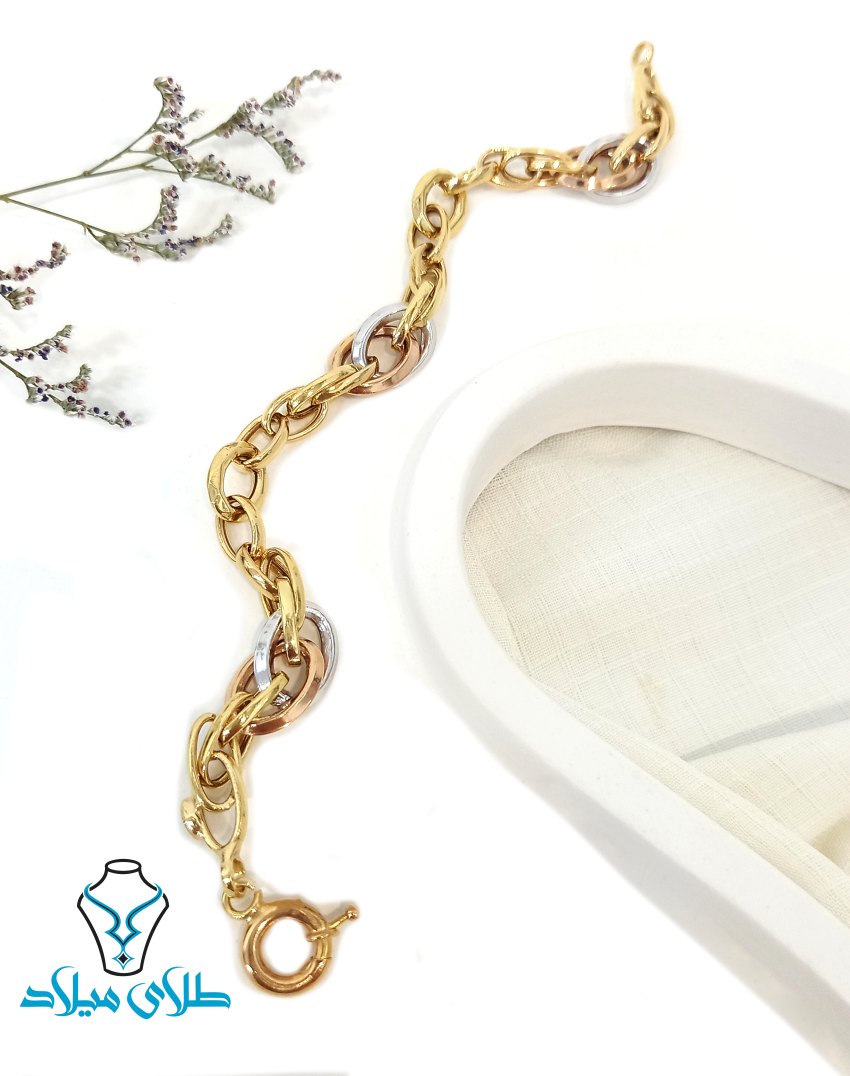 دستبند طلا مدل کد 19 یکی از خاصترین مدلهای زنجیری و اسپرت طلاست که طراحی فوقالعاده جذابی داره. این مدل با ترکیب رنگهای زرد، سفید و رزگلد ساخته شده و جلوهای خاص و متفاوت به استایل شما میده. هم برای خانمها مناسبه هم برای دخترا، و حتی کسایی که دنبال یه مدل ساده اما چشمگیر هستن. اگر دنبال یه اکسسوری خاص و پرطرفدار از بین بهترین مدل دستبند طلا هستی، این مدل دقیقا همون چیزیه که دنبالش بودی.