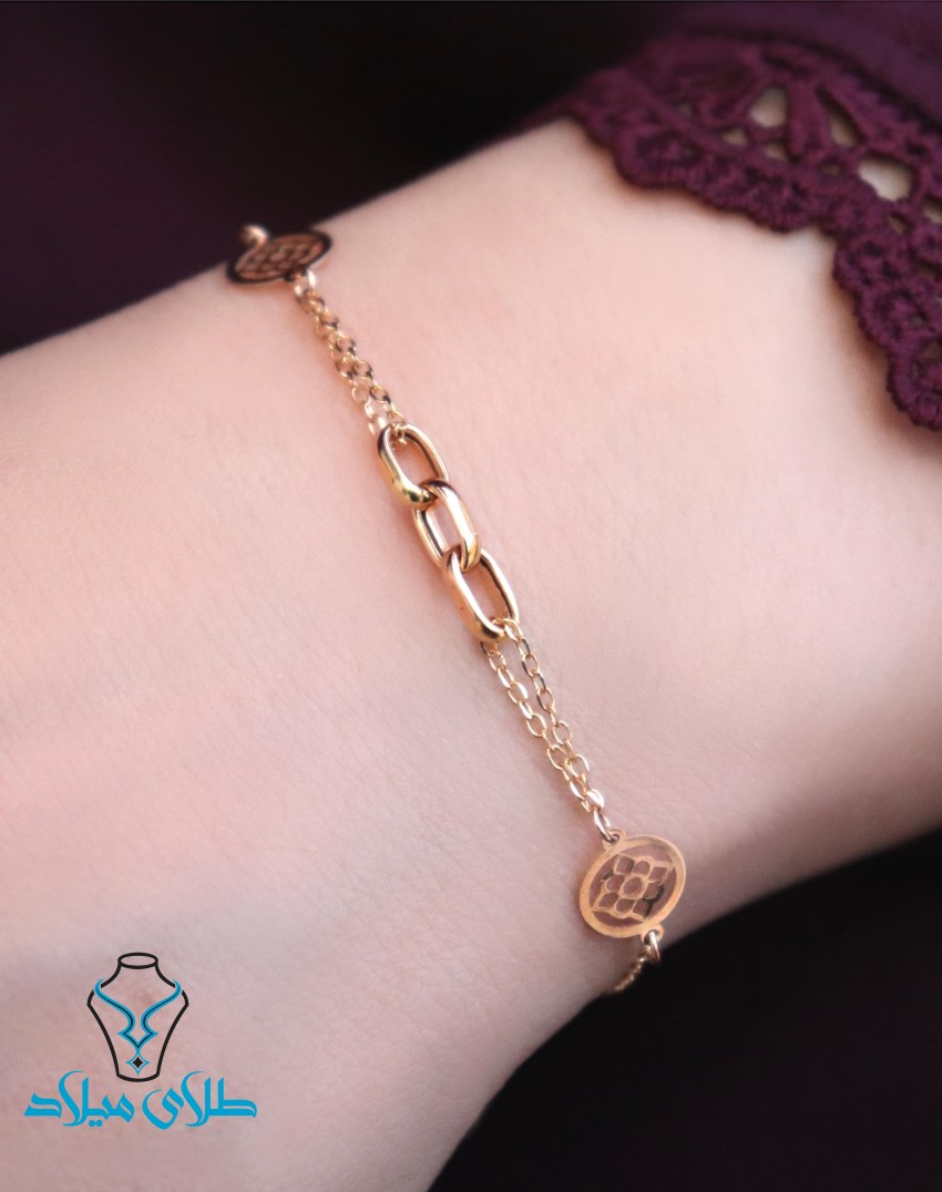 از نظر طراحی هم این مدل در دستهی دستبند زنجیری قرار میگیره. یعنی میتونی هم به تنهایی ازش استفاده کنی، هم در کنار ساعت یا سایر زیورآلات برای یه استایل خاصتر.