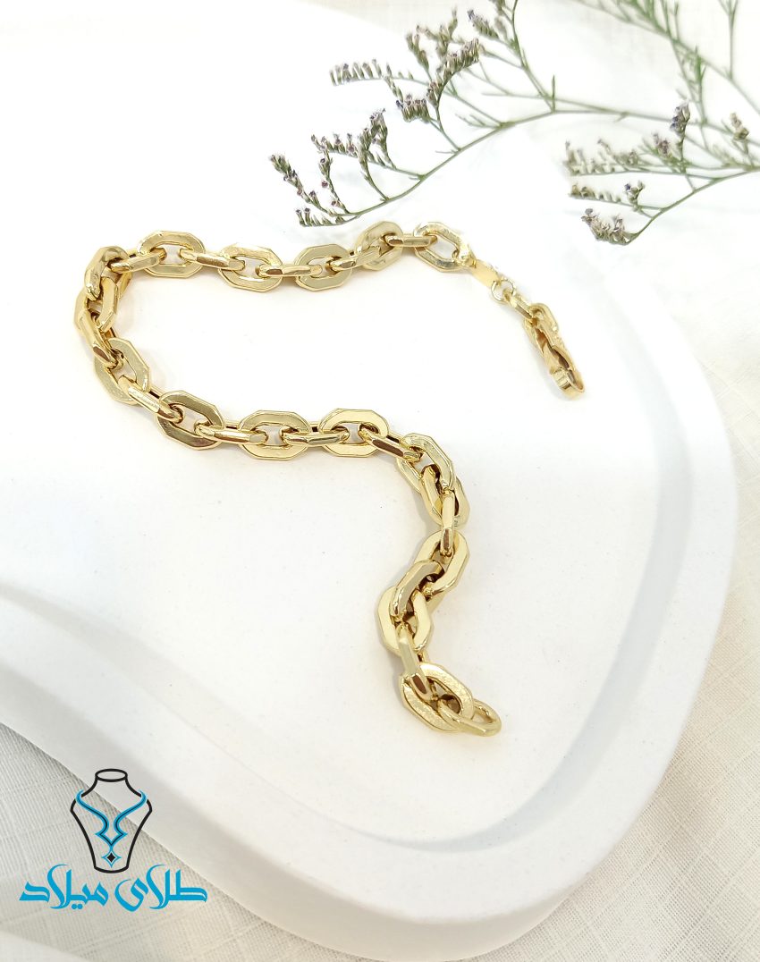 یکی از مزیت های مهم این محصول اینه که با کمترین اجرت طلا یعنی 15 درصد ارائه میشه و هیچ سود اضافه ای بابت فروشندگی گرفته نمیشه. همین موضوع باعث میشه خرید از سایت به صرفه ترین حالت ممکن باشه. سایز دستبند هم 20.5 سانتیمتره که برای اکثر خانم ها اندازه استاندارد و راحت محسوب میشه. از طرفی این محصول ساخت ایران هست و با دقت بالا طراحی شده تا موندگاری و کیفیت خوبی داشته باشه.