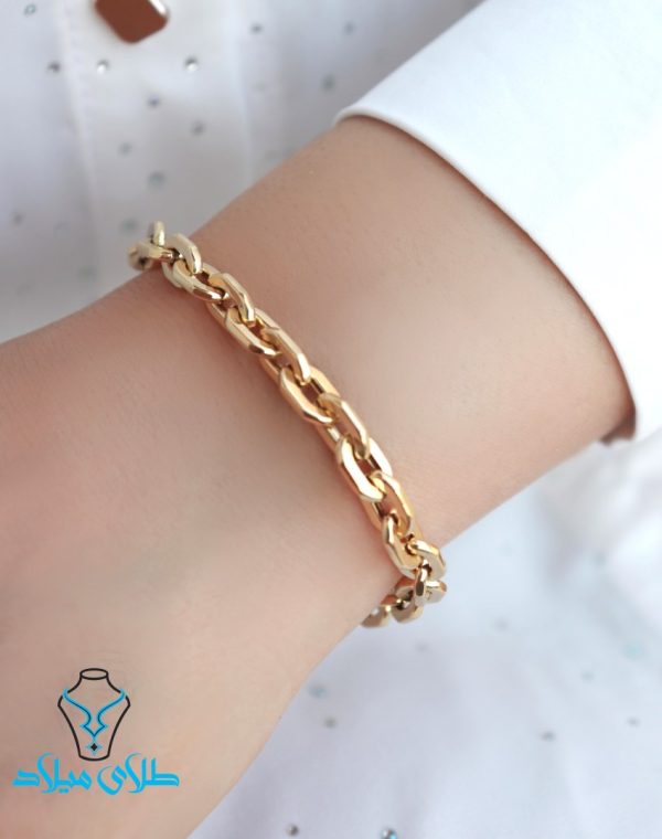 اگر دنبال یه دستبند خاص و شیک هستی که هم برای استفاده روزمره مناسب باشه و هم استایل تو رو متفاوت نشون بده، این دستبند طلا زنانه جدید انتخاب فوق العاده ایه. این دستبند با عیار 18 ساخته شده و وزن اون 7.050 گرمه، پس هم استحکام بالایی داره و هم روی دست خیلی ظریف و جذاب میشینه. رنگ زرد طلا در این مدل باعث میشه به راحتی با هر استایلی ست بشه، چه رسمی و چه کژوال.