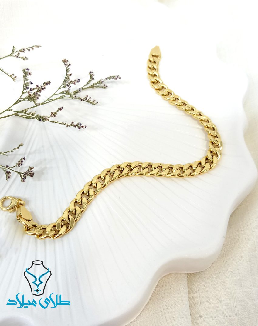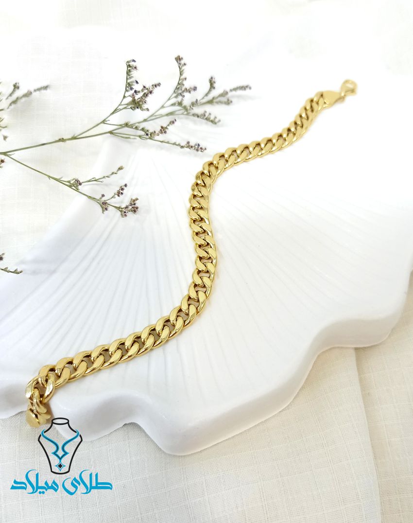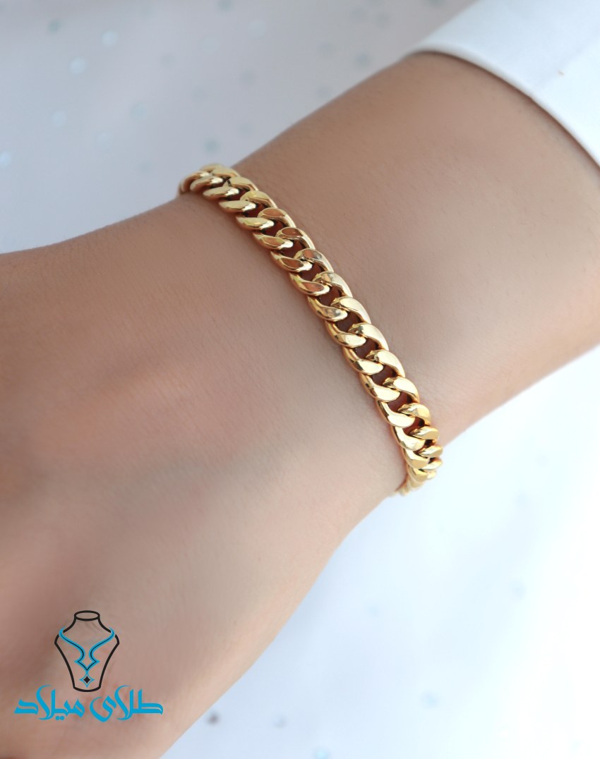 این دستبند با عیار 18 ساخته شده و وزنش حدود 4.630 و 4.720 گرمه که نشون میده در عین استحکام، راحت روی مچ قرار می گیره. رنگ زرد طلاش خیلی جذابه و باعث میشه جلوه فوق العادهای داشته باشه. سایز این دستبند هم 19 و 19.5 سانتی متره و برای بیشتر دست ها کاملا مناسبه. اجرتش 18 درصده و با توجه به کیفیت ساخت ایتالیایی، ارزش پرداخت داره چون هم طراحی و هم ظرافت کار عالیه.